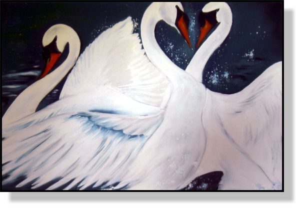 www.conny-diesterweg.deDiese beiden Bilder bilden den Grundstock für eine Versteigerung, die stattfinden soll, um der Schwanenstation finanziell unter die Arme zu greifen. Alle Künstler, groß und klein, egal wie alt oder jung, ob talentiert, berühmt oder unbekannt, sind eingeladen sich zu beteiligen, wenn sie sich berufen fühlen, etwas für die Schwäne zu tun. Ob mit Bildern, Musik, Tonarbeiten oder was auch immer, am besten aber Schwäne darstellend, können die Objekte nächstes Jahr im Frühling bei einem "Schwanenevent" ausgestellt werden.Conny Diesterweg“Rivalen”Akryl 140x100cmvonConny Diesterweg“Für immer”Akryl 140x100cmvonConny Diesterweg